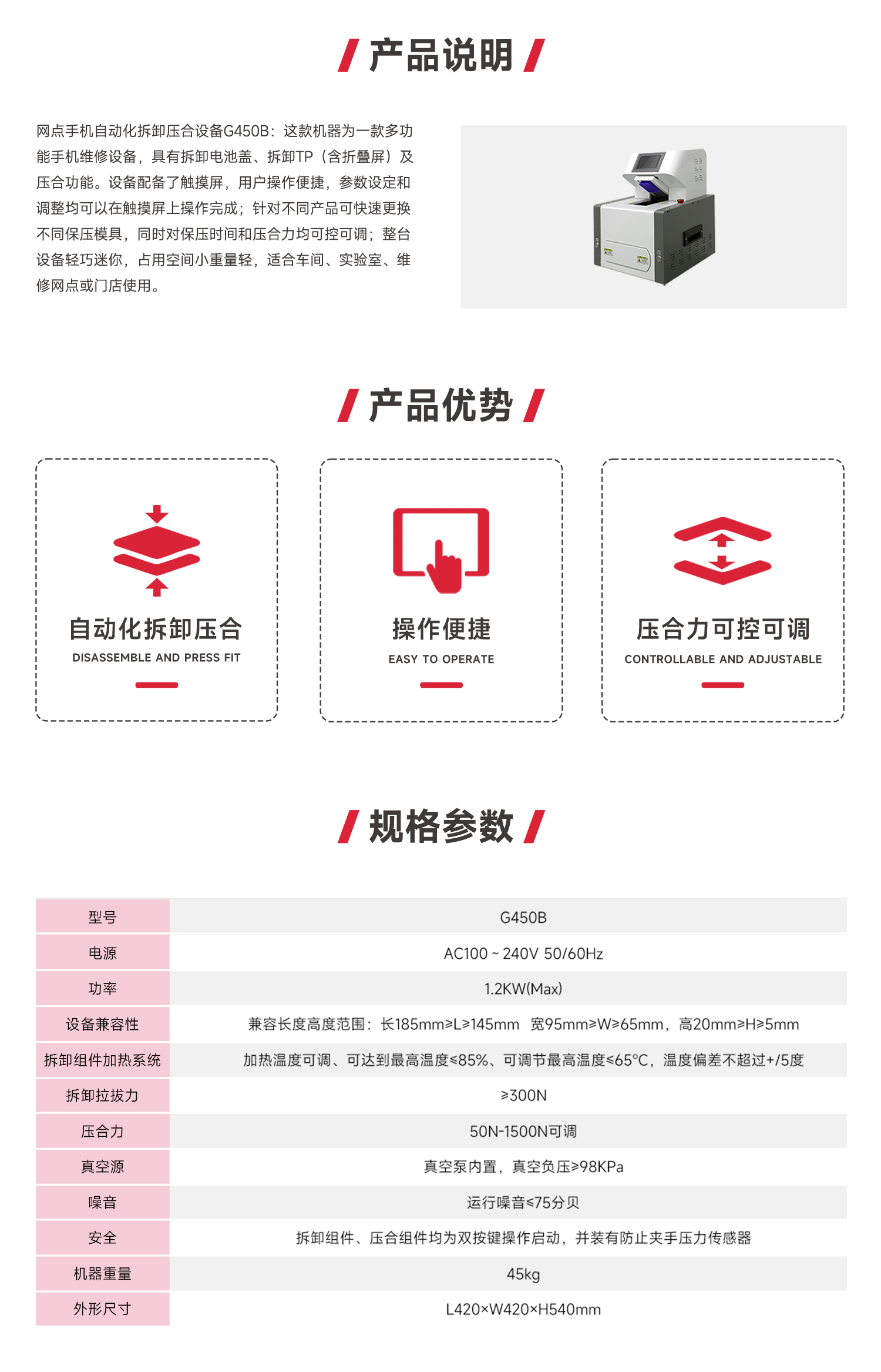 G450B 网点手机自动化拆卸压合设备